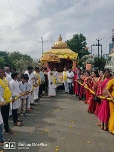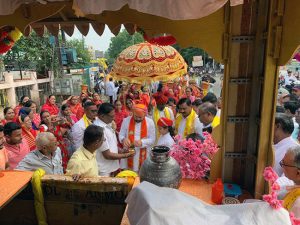 भक्तों ने सहर्ष आनंद के साथ भजन कीर्तन करते हुए रथयात्रा का